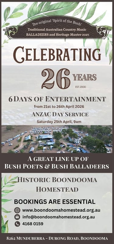 CAMP OVEN MEALS: Camp oven meals will be available on Friday and Saturday evenings. Tickets will be presold for Camp Oven meals. Times of the ticket sales and camp oven meals times will be displayed and announced from the stage. Ticket holders are to line up at the advertised time as the meal will be served on time.